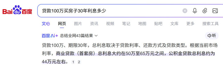 有人算过,贷款利息大概就是贷款金额的三到四成,也就是说贷款100万,光是利息就要30-40万,当然这个数据不是固定的,得看贷款时长以及还款方式。只是一个大概的数据。