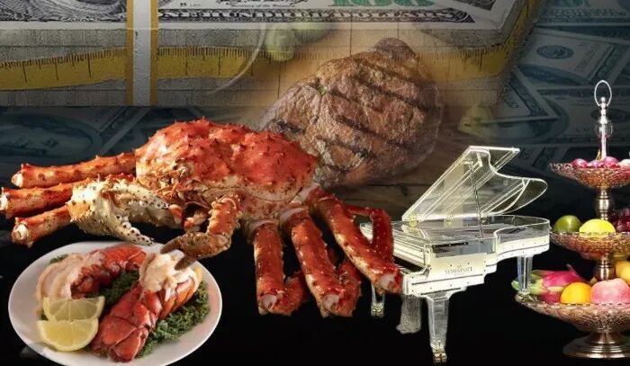 ——高端食材:1510万美元的肋眼牛排、690万美元的龙虾尾、200万美元的帝王蟹,还有100万美元的鲑鱼。