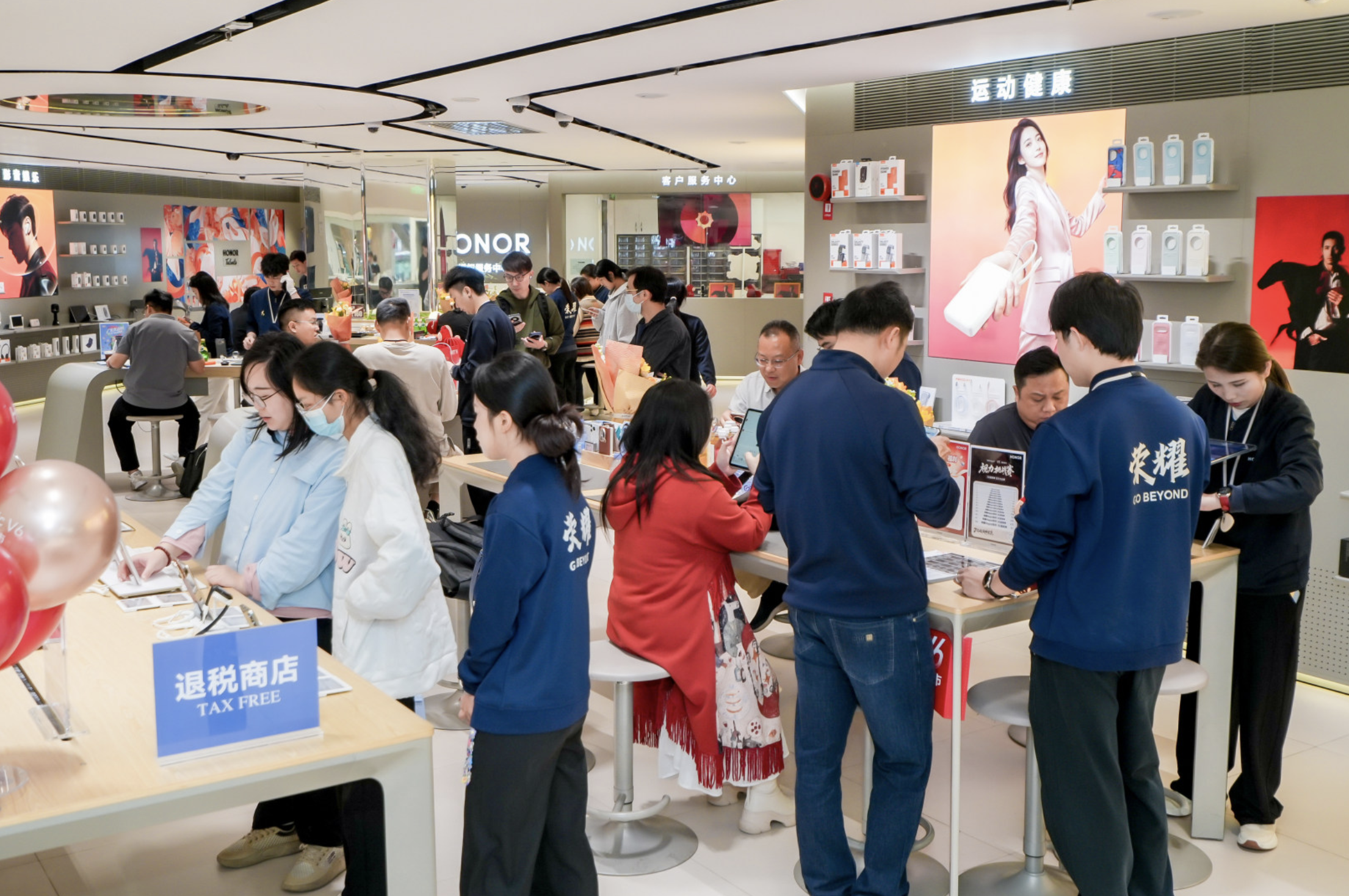 色彩斑斓的波普艺术橱窗,与消费者手中温润高级的“赤兔红”交相辉映,将门店化身为城中热门的科技艺术新地标,也吸引了大量市民驻足打卡。当天,荣耀还精心筹备了“盲盒式”首销尊享福利,多位幸运用户抽取了限量供应的谢霆锋《进化》演唱会门票及爱马仕香水小样。